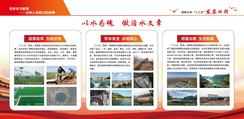 “十三五”期間設(shè)計院干部職工深入學(xué)習(xí)貫徹習(xí)近平新時代中國特色社會主義思想和黨的十九大精神,以新思想、新理念指引和推動企業(yè)發(fā)展;積極對接水利發(fā)展需求,投身邯鄲水利建設(shè)事業(yè),贏得各方贊許;保持戰(zhàn)略定力,主動變革,經(jīng)營穩(wěn)中有進(jìn),全院保持發(fā)展強勁的態(tài)勢。