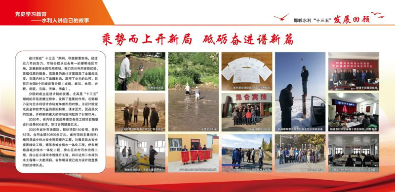 站在“十四五”開局新起點,邯鄲院改革發(fā)展同步邁入新的歷史階段,全體職工將以不懼挑戰(zhàn)、奮楫者先的姿態(tài),緊扣時代脈搏,響應(yīng)偉大號召,用汗水澆灌收獲,以實干篤定前行,乘勢而上開新局,致力于譜寫新時代邯鄲水利設(shè)計工作新篇章。