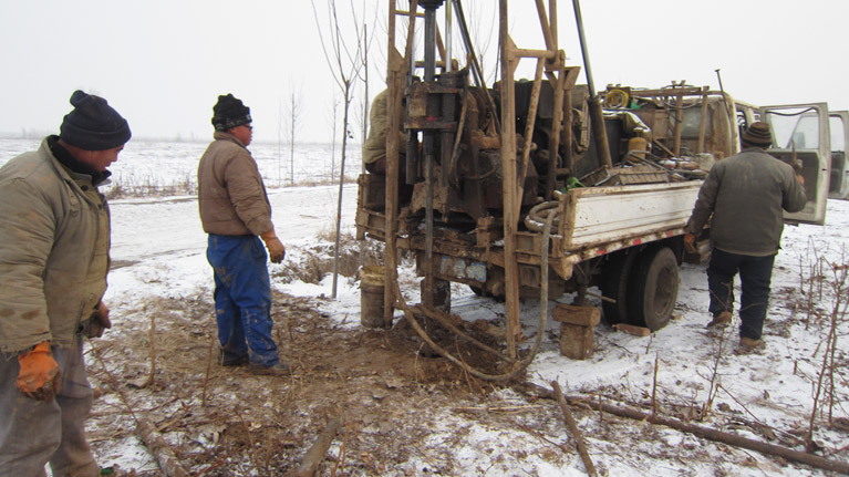 勘察處于2012年11月中旬提前部署開展了邯鄲市南水北調(diào)地方配套工程初步設計階段的勘察外業(yè)工作,本階段的勘察工作主要包括:地質(zhì)測繪、電法物探、鉆探、取土(水)樣、原位測試以及室內(nèi)土工試驗等工作?辈焯幦w職工在天寒地凍的惡劣條件下發(fā)揚了勘測人“犧牲、奉獻、吃苦、敬業(yè)、求真”的精神,通過大家的共同努力,于2012年12月底圓滿完成了外業(yè)勘察和土工試驗工作。由于供水管道線路調(diào)整,于2013年3月再次進場完成了改線段的勘察外業(yè)和土工試驗工作。